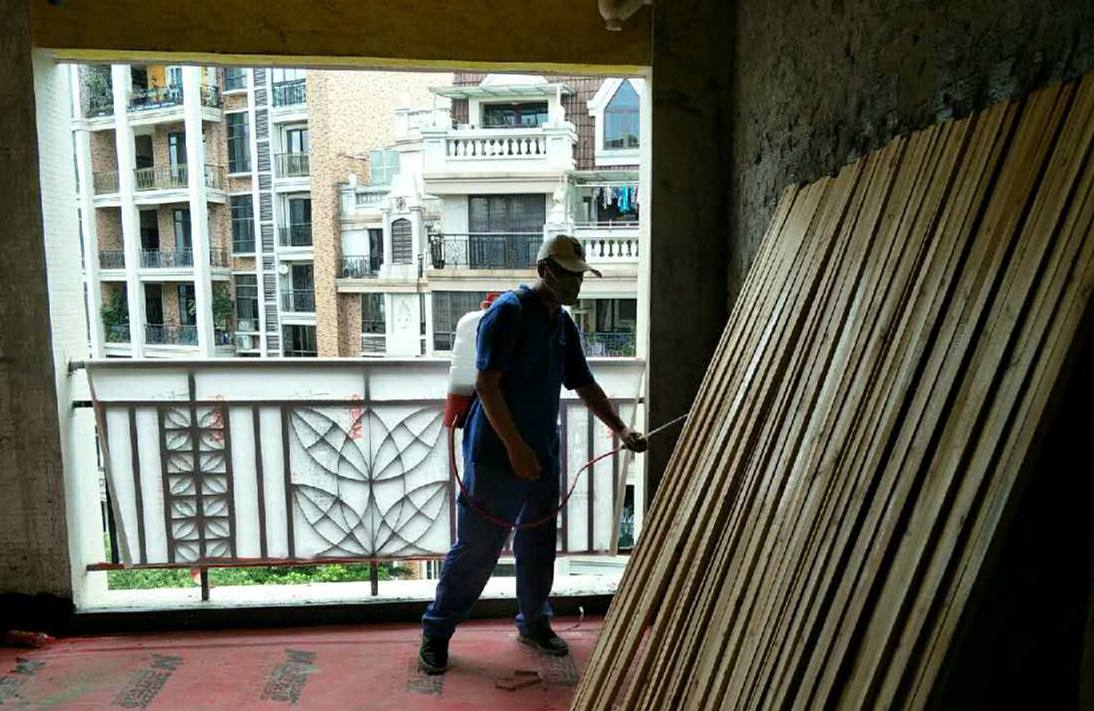 2)施藥時機:在建好地面橫梁和首層完成土回填、平整室內(nèi)的土壤后、做第一層水泥地面前。