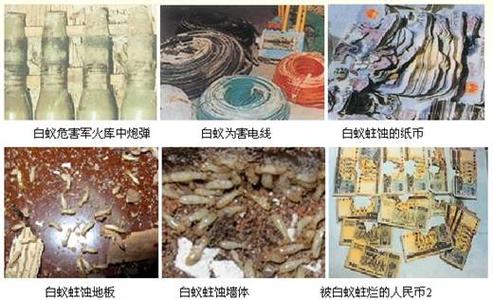 白蟻的危害面很廣,涉及到國民經(jīng)濟(jì)的各個領(lǐng)域,人們的衣、食、住、行和用無不遭受其害.如:房屋建筑、交通和電訊設(shè)備、供電電纜、江河堤圍和水庫堤壩、書籍、衣物、紡織品、武器、農(nóng)林作物等,木材和含纖維素的物質(zhì)是白蟻的主要食糧。
