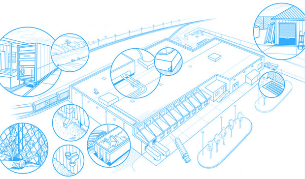 4. 為長(zhǎng)期穩(wěn)定控制鼠蟲害風(fēng)險(xiǎn),建立鼠蟲害三道防線,綜合現(xiàn)場(chǎng)環(huán)境及客戶要求,室外選擇性安裝化學(xué)或物理監(jiān)控設(shè)施,室內(nèi)選擇性安裝物理或生物監(jiān)控設(shè)施,對(duì)室內(nèi)外鼠蟲害活動(dòng)情況進(jìn)行監(jiān)控。