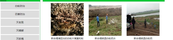 對江河堤壩的危害:白蟻危害江河堤防的嚴重性,我國古代文獻上已有較為詳細的記載,近代的記載更為詳盡。其種類有土白蟻屬大白蟻屬和家白蟻屬種類的白蟻群體,它們在堤壩內(nèi),密集營巢,迅速繁殖,苗圃星羅棋布(除家白蟻外),蟻道四通八達,有些蟻道甚至穿通堤壩的內(nèi)外坡,當汛期水位升高時,常常出現(xiàn)管漏險情,更烈者則釀成塌堤垮壩。但因為雨多,氣溫回升快,今年白蟻來得早,去得遲,且白蟻跟著雨勢有節(jié)奏地不斷出現(xiàn),一陣一陣騷擾居民的生活,不僅客觀上提高了白蟻的存活率,也讓居民覺得白蟻特別多。