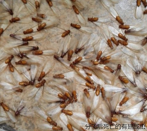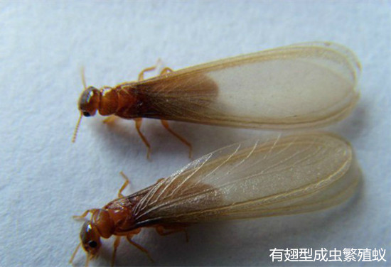 或有翅型:體軀骨化,黃、褐或黑色,有兩對(duì)發(fā)達(dá)的翅。每年4-6月是其分飛高峰期,特別是在春夏雨后悶熱時(shí),大量長翅繁殖蟻從蟻巢中飛出,在離巢不遠(yuǎn)處的建筑物附近低飛,飛行時(shí)間很短,這種現(xiàn)象稱為婚飛或群飛(分群)。群蟻在低空飛舞,好像在開舞會(huì),各自毫無拘束地自由選擇對(duì)象。"情投意合者"飛落地面,各自脫掉翅膀,雌雄成雙追逐,通常為雌前雄后,完成"婚配"大事。配對(duì)后的雌雄成蟲經(jīng)一段時(shí)間后,便開始尋找合適場所,建筑新巢"定居"。入穴后,雄蟲常用口器舔舐雌蟲的腹部,有時(shí)雌雄蟲彼此舔舐,然后產(chǎn)卵,繁殖后代,另立新的群體。這對(duì)"新婚"的雌雄蟻,就是未來新群體的母蟻和父蟻,也就是新群體中的蟻后和蟻王。大多情況下,這對(duì)伴侶終身過著"一夫一妻制"的文明社會(huì)生活。但不是婚飛中的所有個(gè)體都能成雙建立新群,當(dāng)它們大量飛出時(shí),常被各種鳥類、捕食性昆蟲或其他動(dòng)物吃掉,往往只有其中的少數(shù)能夠幸存下來,但盡管是少數(shù),也足以維持其種族繁衍,并造成對(duì)木質(zhì)建筑物的危害的了,王后躺在王室中可是專門"生育"的,到一定時(shí)期又有成蟲出飛建立新的群體。